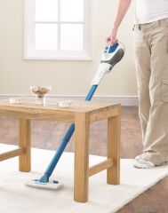 İki işlevli, normal şarjlı süpürge veya teleskopik uzatma borusu ve fırçalı sert zemin başlığı ile dikey kullanım imkânı,